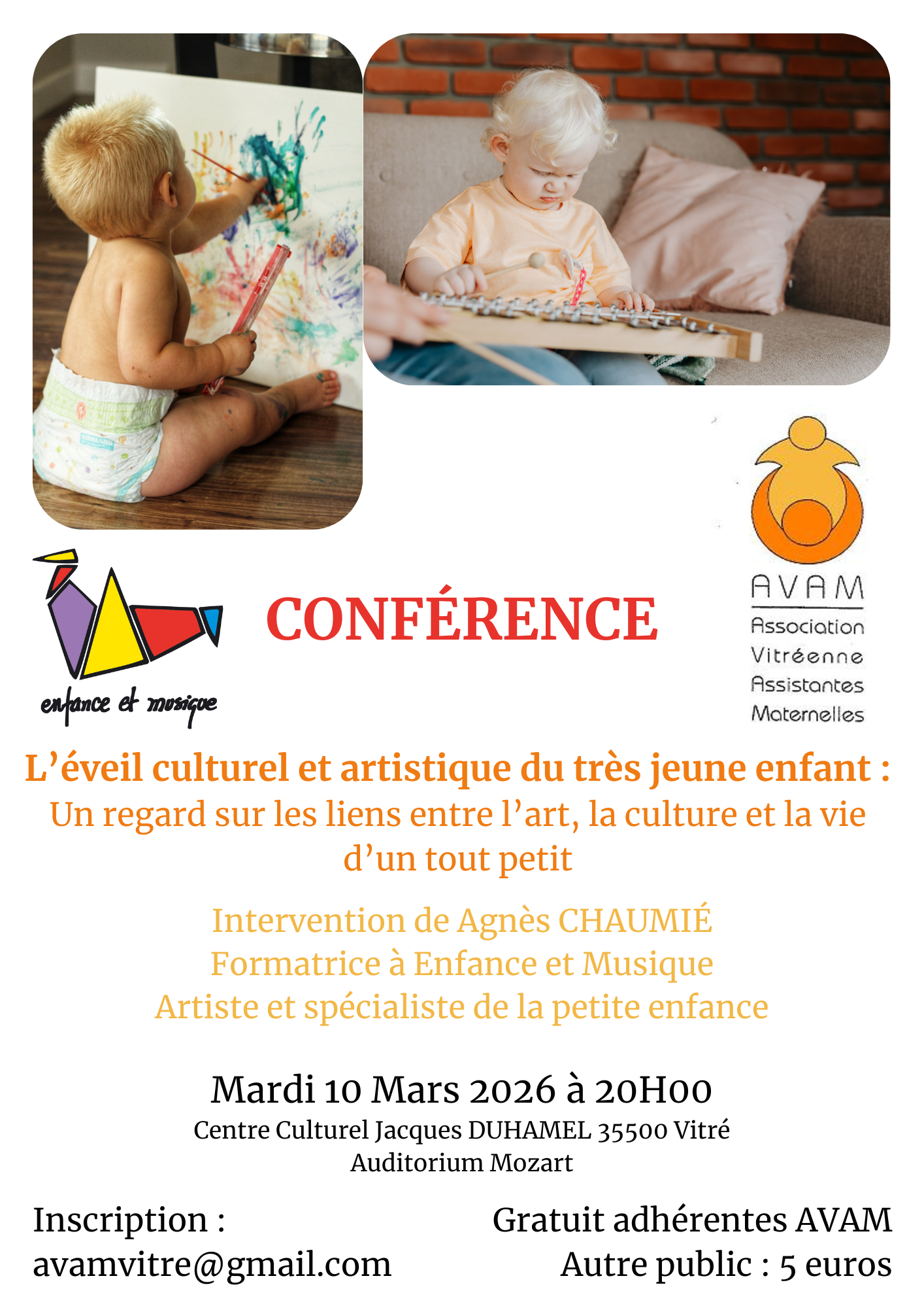 Un regard sur les liens entre l’art, la culture et la vie d’un tout-petit, comment ils nous aident à vivre, à grandir et à découvrir le monde. Animée par Agnès Chaumié de l’association Enfance et Musique, musicienne, chanteuse, formatrice, auteur de nombreux disques pour enfants.