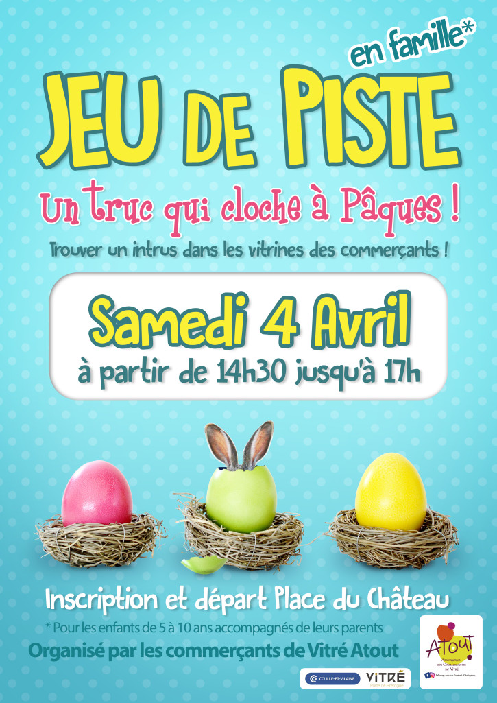 Samedi 4 avril, rendez vous dans la cour du Château à partir de 14h30 (départ entre 14h30 et 16h30) pour la célèbre chasse à l'intrus organisée par l'association des commerçants Vitré Atout