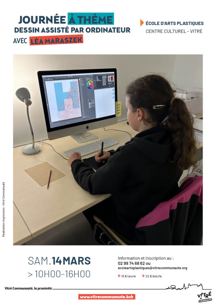 L'École d'Arts Plastiques de Vitré Communauté organise une journée sur le Dessin Assisté par Ordinateur le samedi 14 mars au centre culturel, 6 rue de Verdun à Vitré.