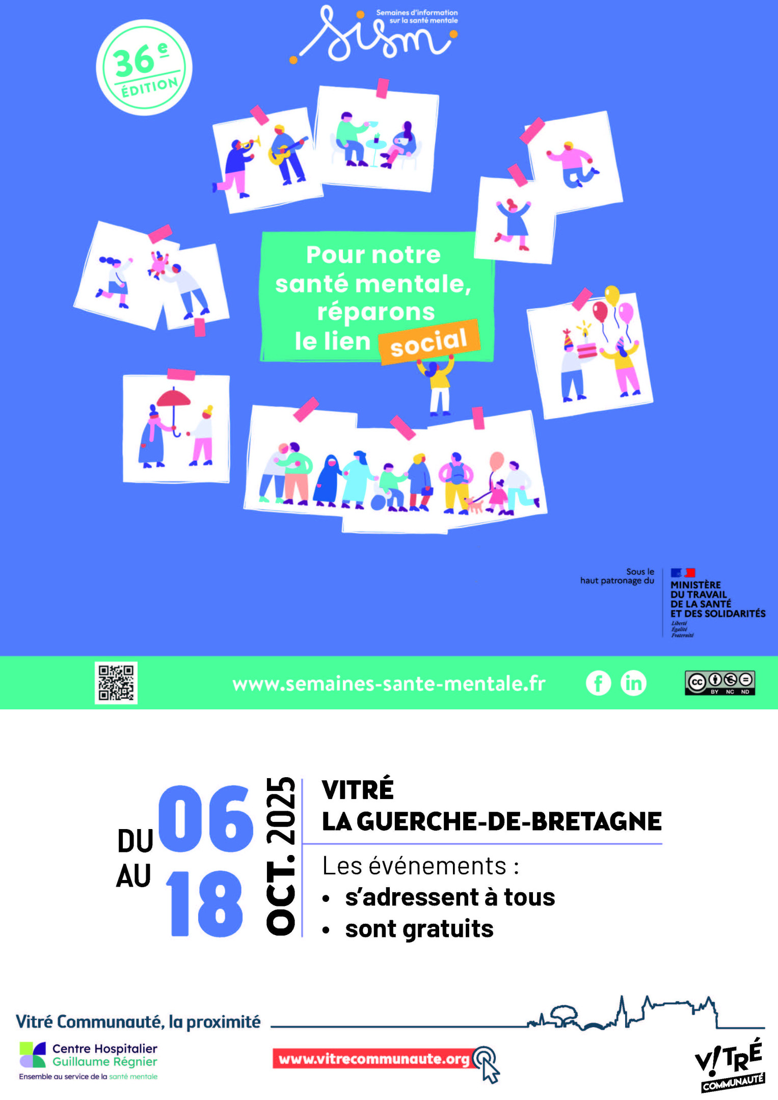 Découvrez le programme proposé dans le cadre des Semaines d'Information sur la Santé Mentale (SISM) proposé sur le territoire de Vitré Communauté