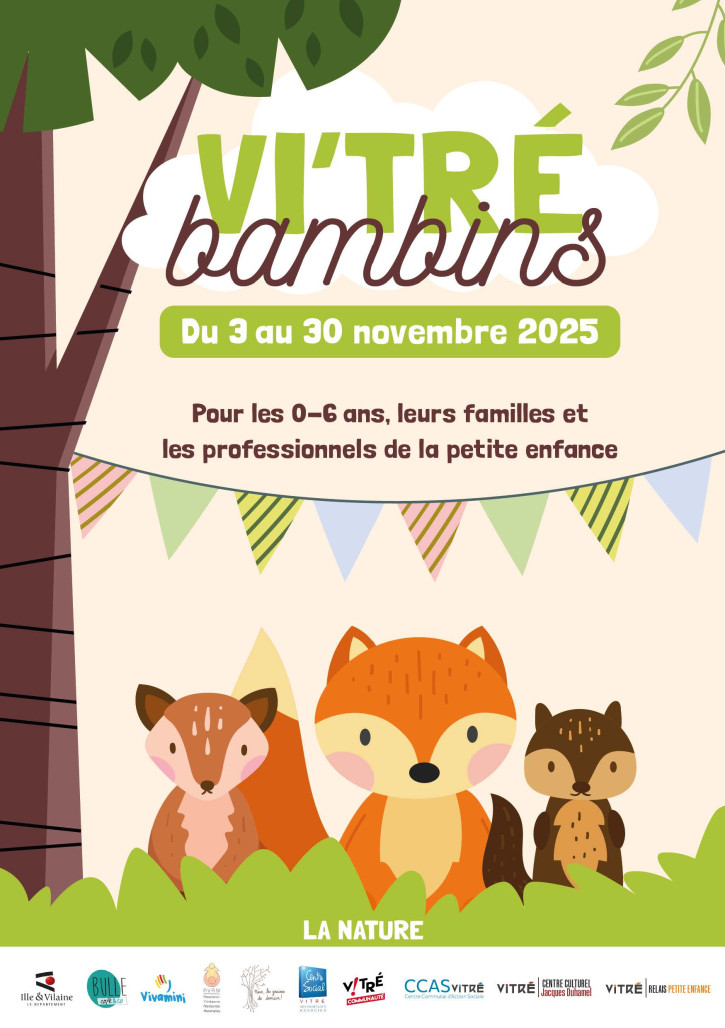 Du 3 au 30 novembre, Vi’tré Bambins propose une série d’animations spécialement pensées pour les 0-6 ans, leurs familles et les professionnels de la petite enfance. Un événement multi-partenarial porté par le service petite enfance de la Ville de Vitré et plusieurs partenaires locaux, qui cette année se décline sous le thème « La nature ».